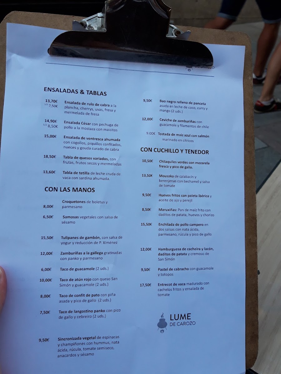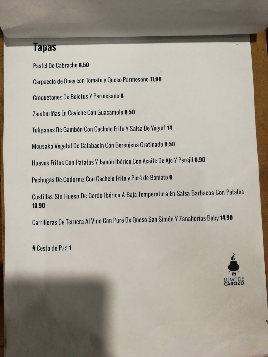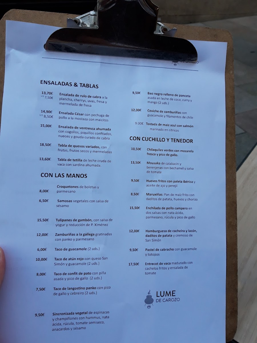 Lume de Carozo Menu